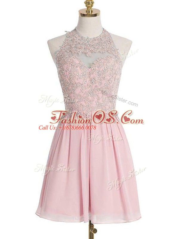 Sleeveless Knee Length Appliques Lace Up Dama Dress with Pink