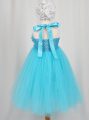 Sleeveless Knee Length Hand Made Flower Side Zipper Little Girls Pageant Dress with Aqua Blue