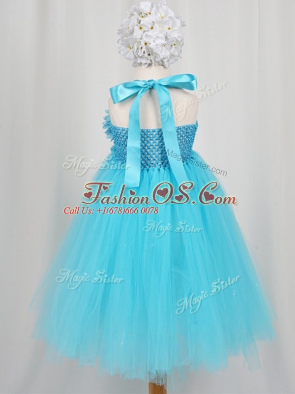 Home >  Special Occasion Dresses >  Mini Quinceanera Dresses > Sleeveless Knee Length Hand Made Flower Side Zipper Little Girls Pageant Dress with Aqua Blue