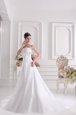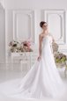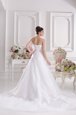 Sleeveless Lace and Bowknot Lace Up Bridal Gown with White Court Train