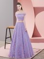 Sleeveless Lace Floor Length Zipper Prom Dresses in Lavender with Beading