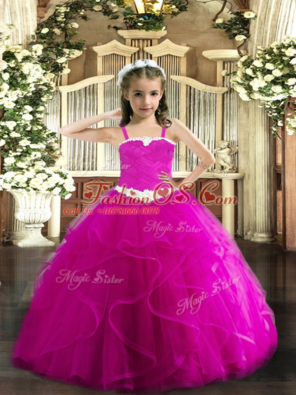 Home >  Special Occasion Dresses >  Beautiful Kids Pageant Dresses > Sleeveless Lace Up Floor Length Appliques and Ruffles Pageant Gowns