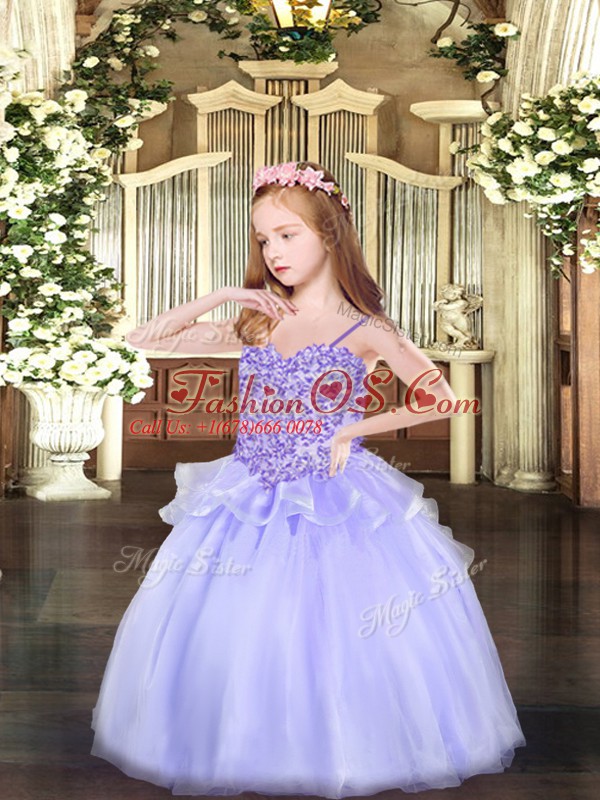 Sleeveless Lace Up Floor Length Appliques Little Girl Pageant Dress