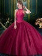 Sleeveless Lace Up Floor Length Appliques Quince Ball Gowns