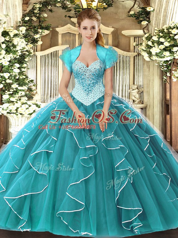 Sleeveless Lace Up Floor Length Beading 15 Quinceanera Dress