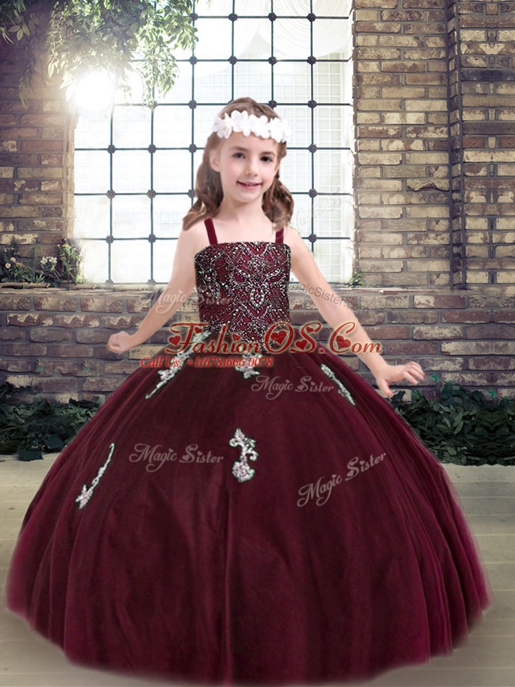 Sleeveless Lace Up Floor Length Beading and Appliques Little Girls Pageant Gowns