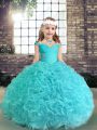 Sleeveless Lace Up Floor Length Beading and Ruching Pageant Dress for Girls