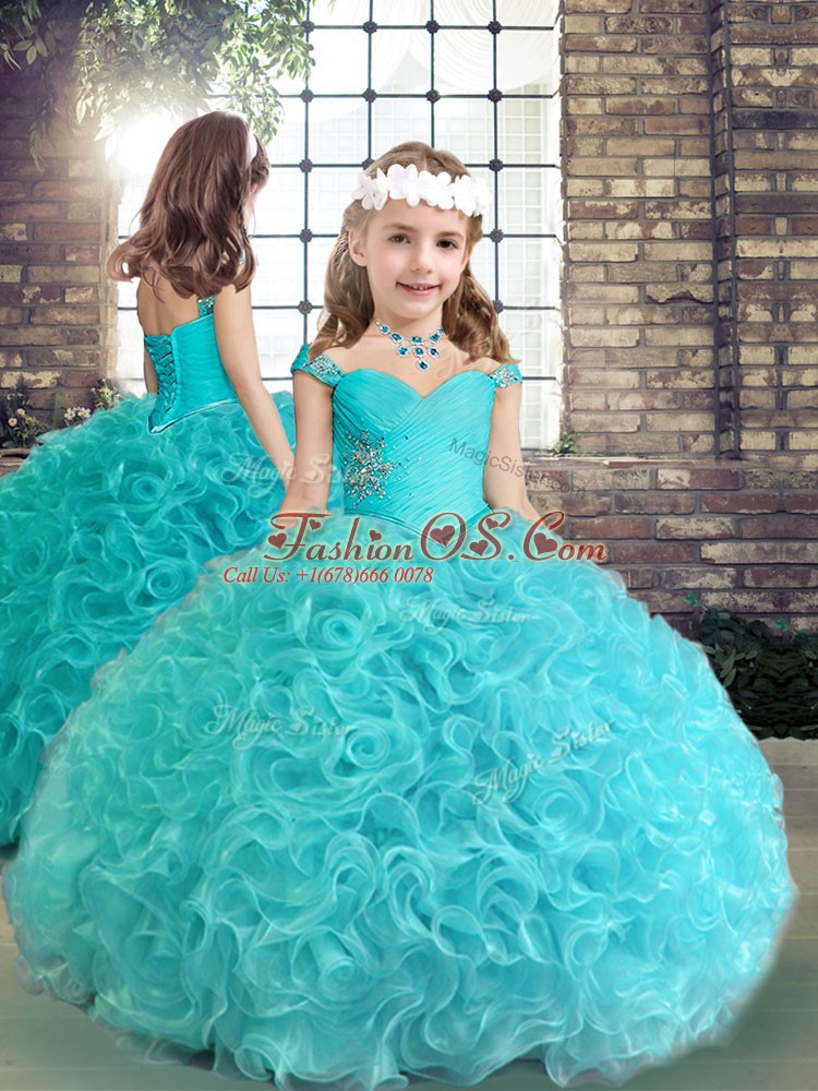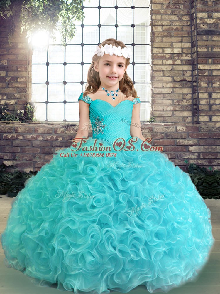 Home >  Special Occasion Dresses >  Beautiful Kids Pageant Dresses > Sleeveless Lace Up Floor Length Beading and Ruching Pageant Dress for Girls
