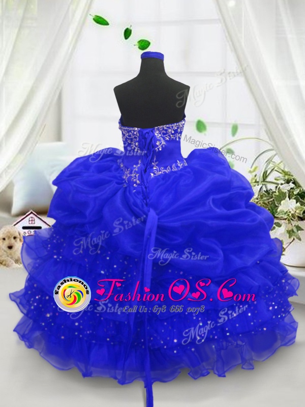 Sleeveless Lace Up Floor Length Beading and Ruffled Layers and Pick Ups Little Girl Pageant Gowns