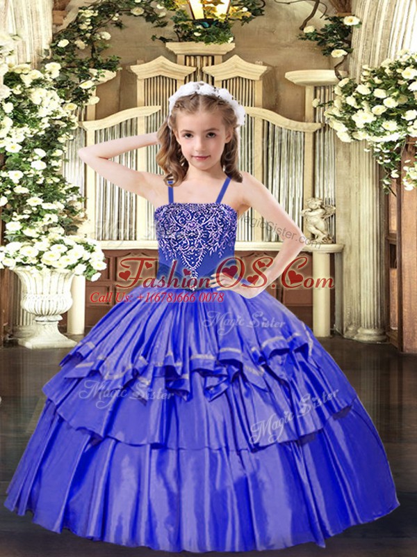 Home >  Special Occasion Dresses >  Beautiful Kids Pageant Dresses > Sleeveless Lace Up Floor Length Beading and Ruffled Layers Glitz Pageant Dress