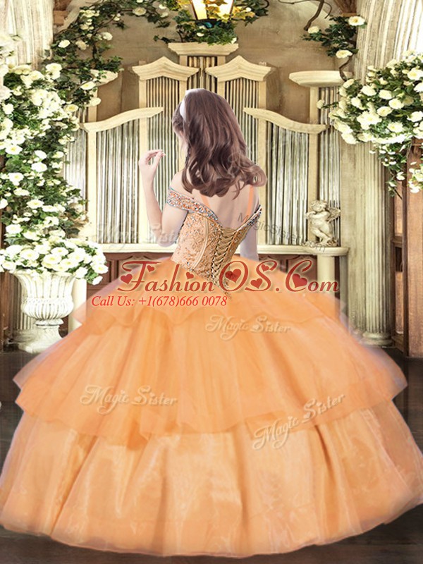 Sleeveless Lace Up Floor Length Beading and Ruffled Layers Little Girls Pageant Dress Wholesale