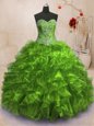 Sleeveless Lace Up Floor Length Beading and Ruffles 15th Birthday Dress