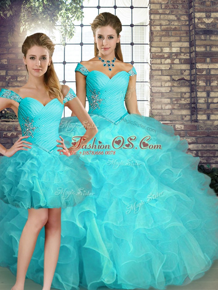 Sleeveless Lace Up Floor Length Beading and Ruffles 15th Birthday Dress