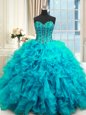 Sleeveless Lace Up Floor Length Beading and Ruffles and Sequins Ball Gown Prom Dress