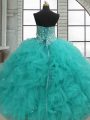 Sleeveless Lace Up Floor Length Beading and Ruffles Ball Gown Prom Dress