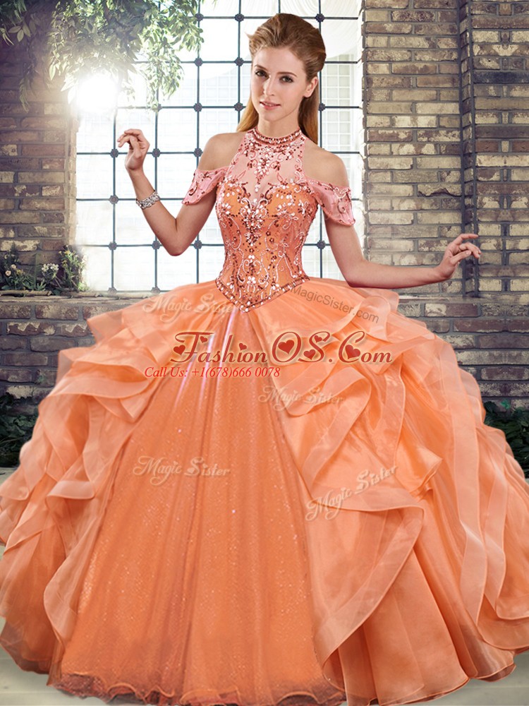 Sleeveless Lace Up Floor Length Beading and Ruffles Ball Gown Prom Dress