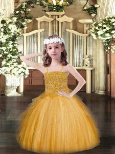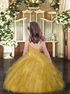 Home >  Special Occasion Dresses >  Pretty Little Girl Pageant Dresses > Sleeveless Lace Up Floor Length Beading and Ruffles Girls Pageant Dresses