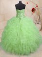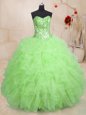 Sleeveless Lace Up Floor Length Beading and Ruffles Quinceanera Gown