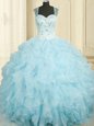 Sleeveless Lace Up Floor Length Beading and Ruffles Quinceanera Gowns
