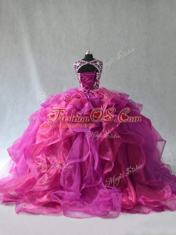 Sleeveless Lace Up Floor Length Beading and Ruffles Quinceanera Gowns