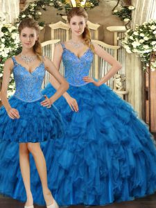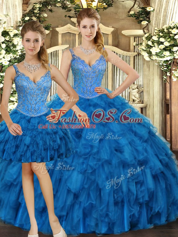 Sleeveless Lace Up Floor Length Beading and Ruffles Sweet 16 Dresses