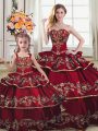 Sleeveless Lace Up Floor Length Embroidery and Ruffled Layers Quince Ball Gowns