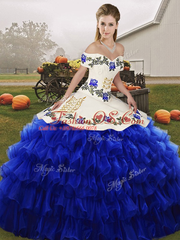 Sleeveless Lace Up Floor Length Embroidery and Ruffled Layers Sweet 16 Dresses