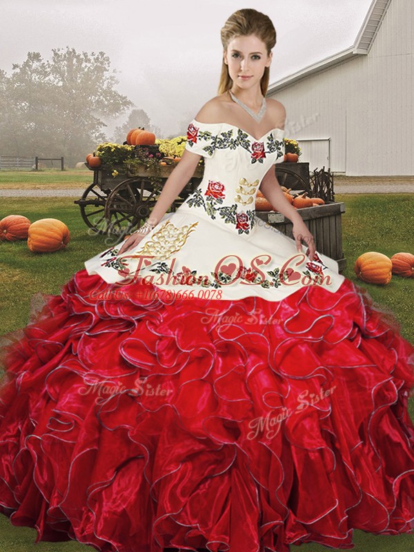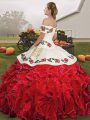 Sleeveless Lace Up Floor Length Embroidery and Ruffles 15 Quinceanera Dress