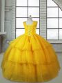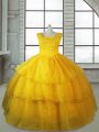Sleeveless Lace Up Floor Length Ruffled Layers Little Girl Pageant Dress