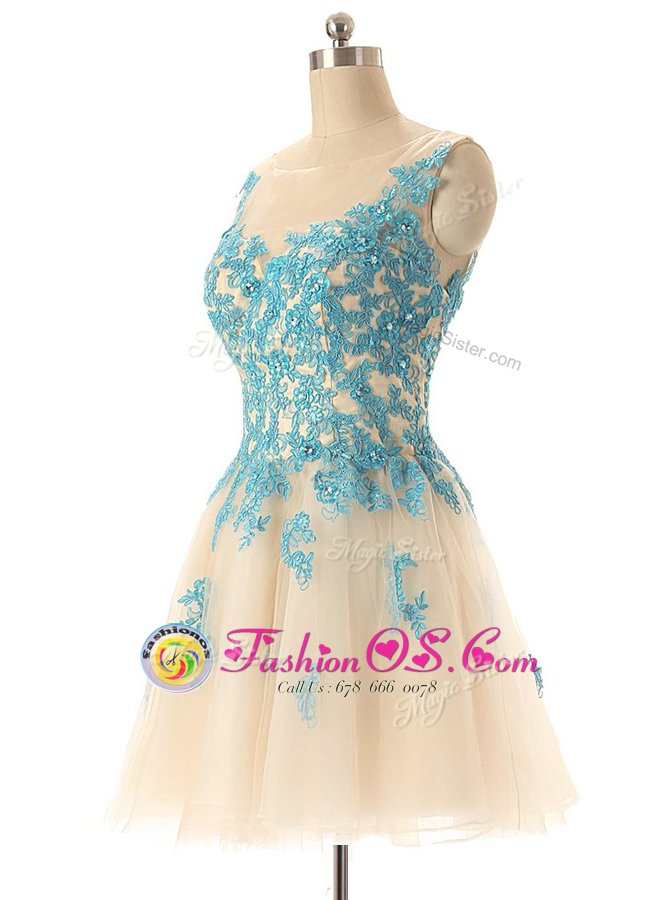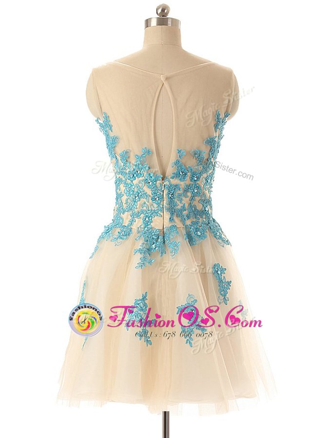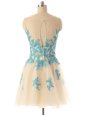 Sleeveless Mini Length Beading and Appliques Zipper Homecoming Dress with Champagne