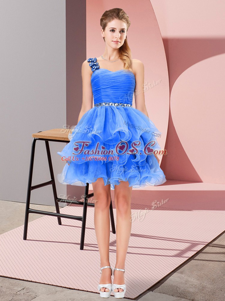 Home >  Prom Dresses >  Christmas Party Dresses > Sleeveless Mini Length Beading and Ruffled Layers Lace Up Party Dress for Girls with Blue
