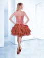 Sleeveless Mini Length Beading and Ruffles and Pick Ups Lace Up Prom Dresses with Coral Red