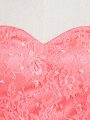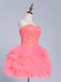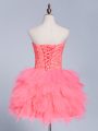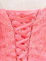 Sleeveless Mini Length Lace and Appliques Lace Up Ball Gown Prom Dress with Watermelon Red