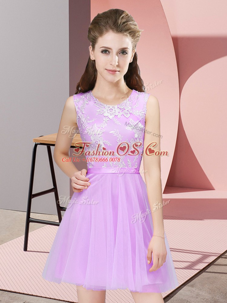 Home >  Special Occasion Dresses >  Discount Dama Dresses > Sleeveless Mini Length Lace Side Zipper Quinceanera Dama Dress with Lilac