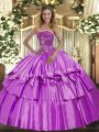Sleeveless Organza and Taffeta Floor Length Lace Up 15 Quinceanera Dress in Lilac with Beading and Ruffled Layers