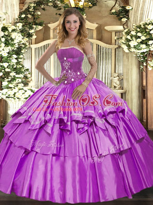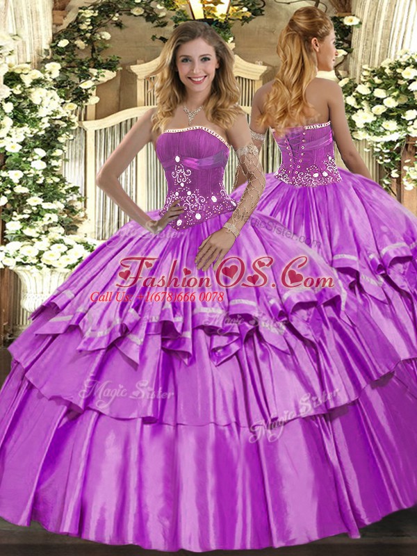 Home >  Quinceanera Dresses >  Fast Delivery Quinceanera Dresses > Sleeveless Organza and Taffeta Floor Length Lace Up 15 Quinceanera Dress in Lilac with Beading and Ruffled Layers