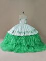 Sleeveless Organza Brush Train Lace Up Quinceanera Gowns in Green with Embroidery