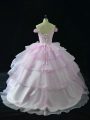 Sleeveless Organza Brush Train Lace Up Quinceanera Gowns in Lilac with Beading and Ruffled Layers