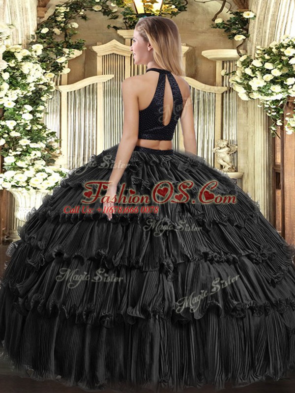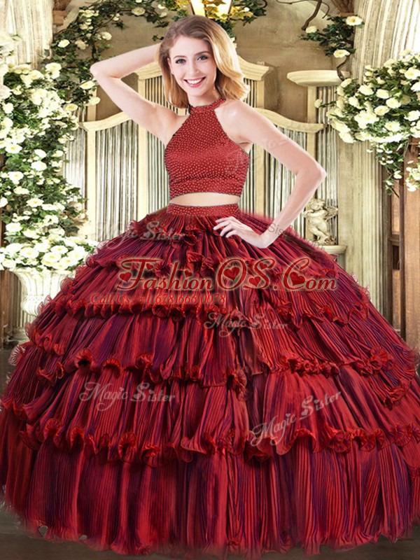 Sleeveless Organza Floor Length Backless Vestidos de Quinceanera in Wine Red with Beading and Ruffled Layers