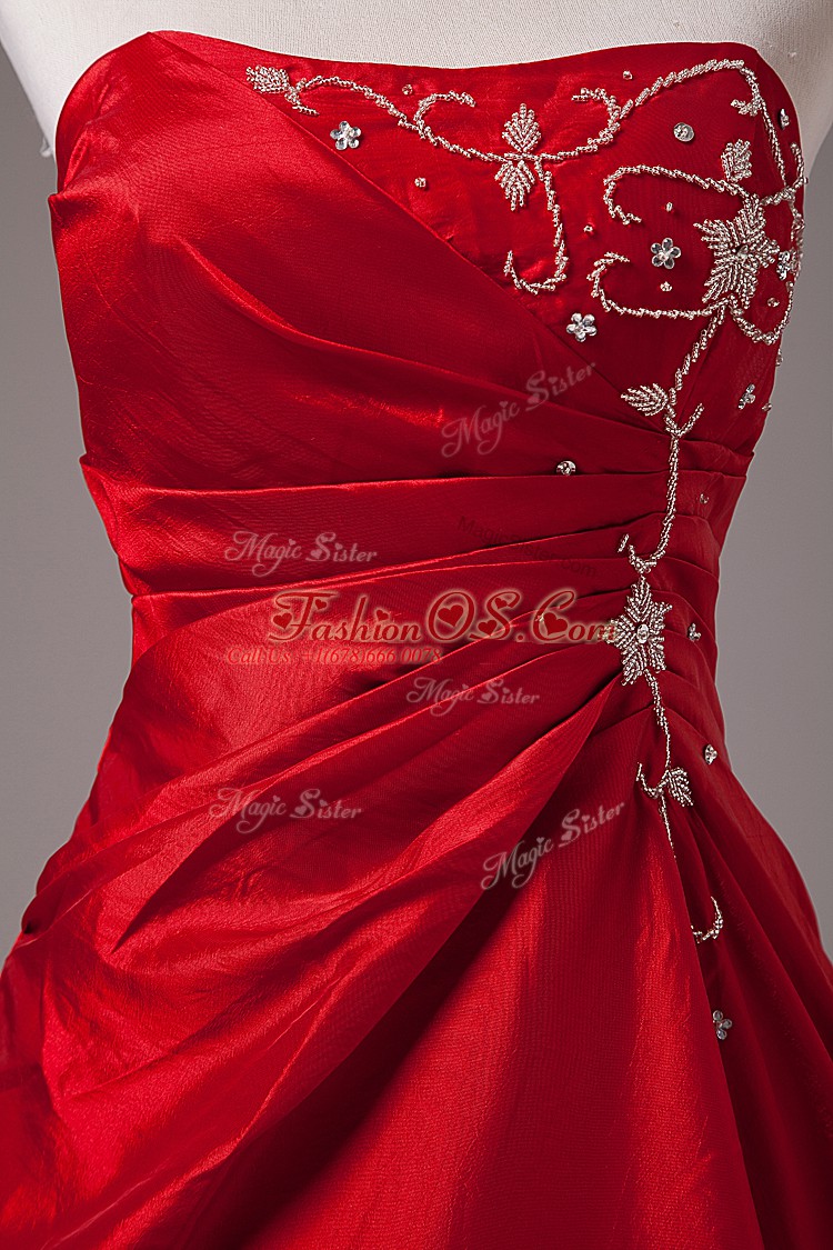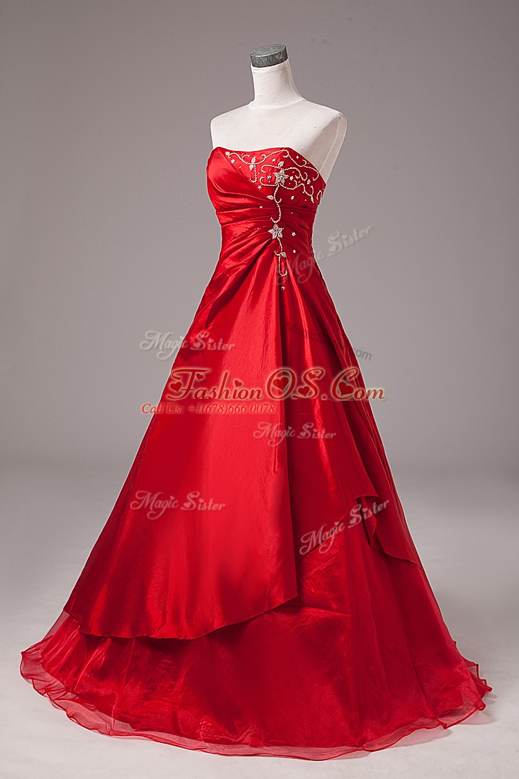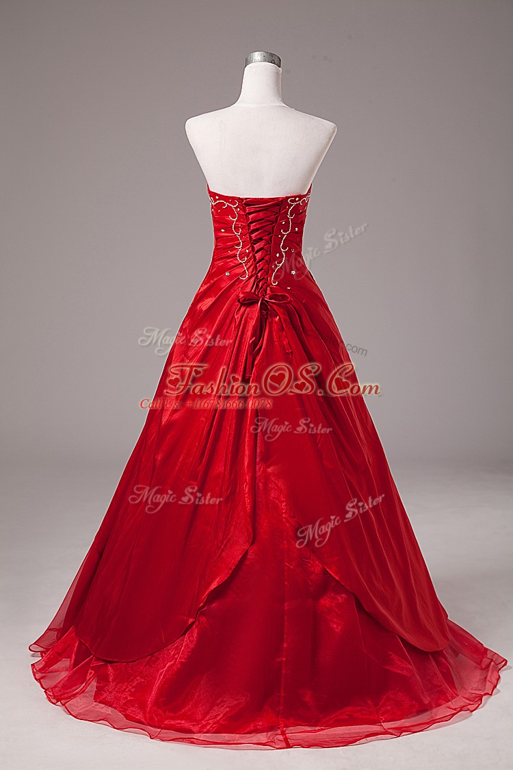 Sleeveless Organza Floor Length Lace Up Ball Gown Prom Dress in Wine Red with Beading and Embroidery