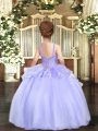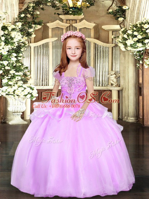 Sleeveless Organza Floor Length Lace Up Child Pageant Dress in Lilac with Beading