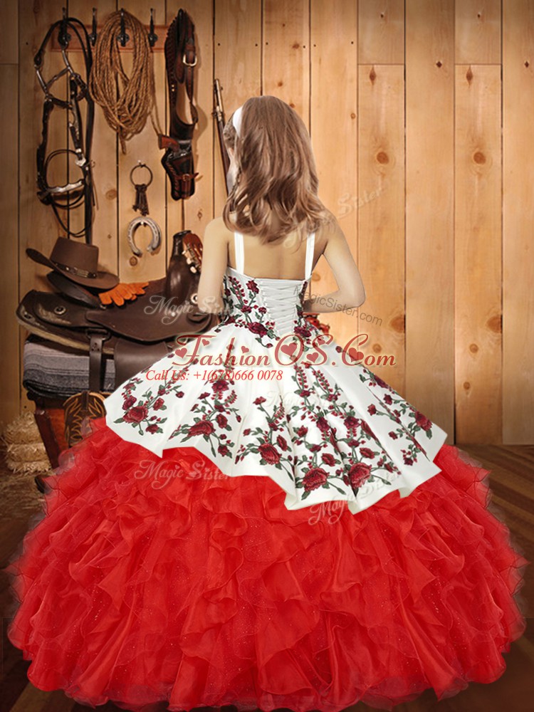 Home >  Special Occasion Dresses >  Beautiful Kids Pageant Dresses > Sleeveless Organza Floor Length Lace Up Glitz Pageant Dress in Orange Red with Embroidery and Ruffles