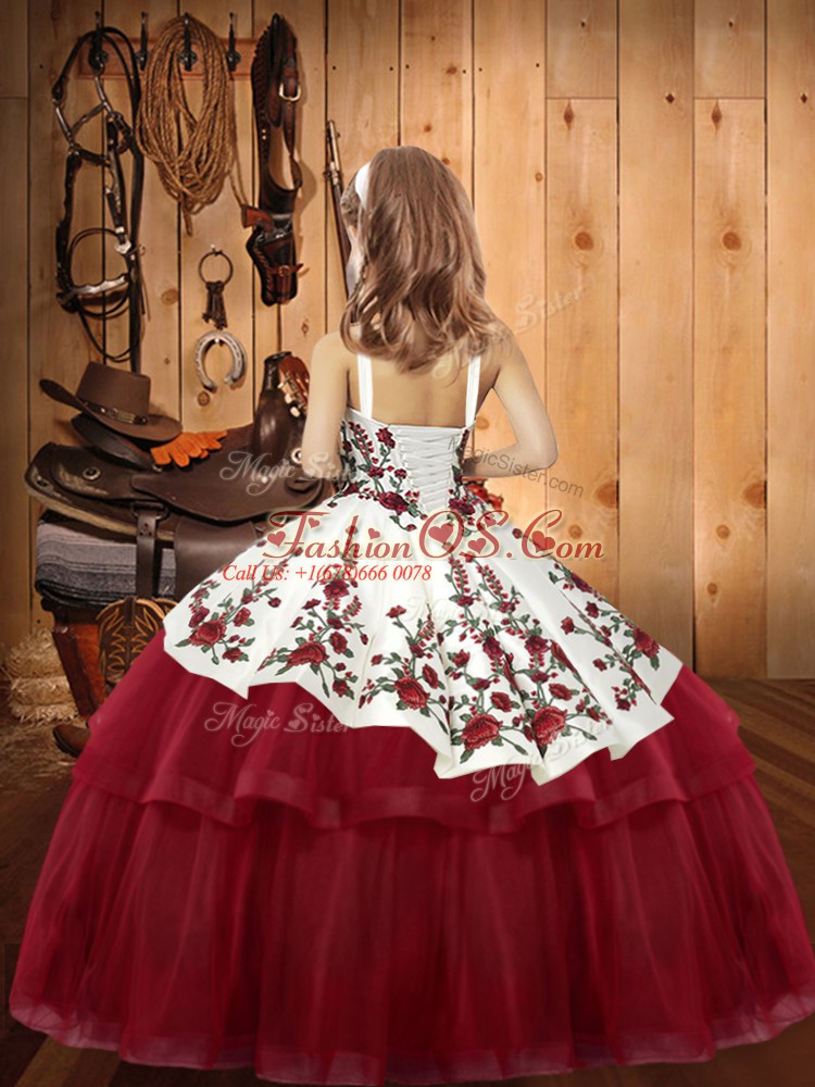 Sleeveless Organza Floor Length Lace Up Kids Pageant Dress in Purple with Embroidery