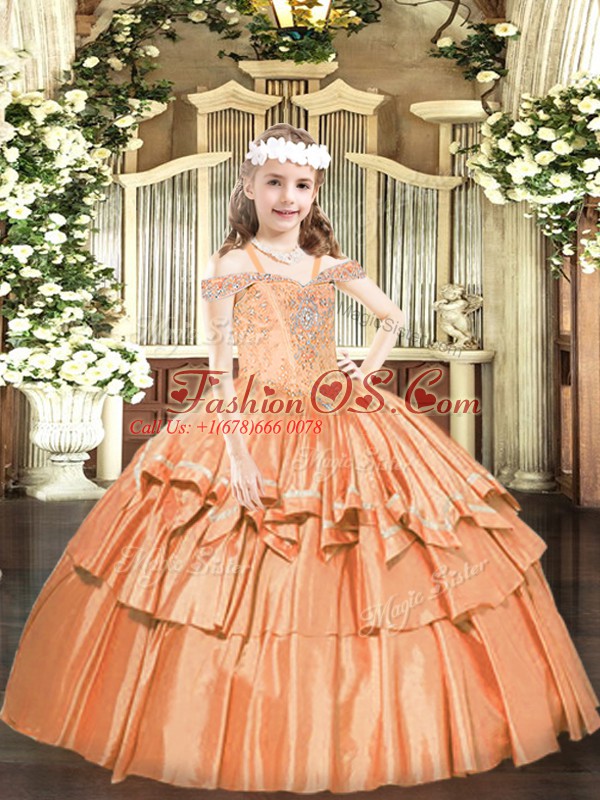 Home >  Special Occasion Dresses >  Lovely Little Girl Pageant Dresses > Sleeveless Organza Floor Length Lace Up Little Girls Pageant Dress Wholesale in Orange with Beading and Ruffled Layers