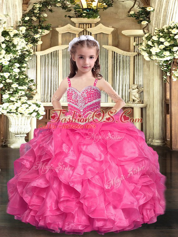 Home >  Special Occasion Dresses >  Lovely Little Girl Pageant Dresses > Sleeveless Organza Floor Length Lace Up Little Girls Pageant Gowns in Hot Pink with Beading and Ruffles