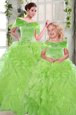 Sleeveless Organza Floor Length Lace Up Quinceanera Dresses in Apple Green for with Beading and Ruffles