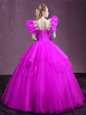 Home >  Quinceanera Dresses >  Fashionable Quinceanera Dresses > Sleeveless Organza Floor Length Lace Up Quinceanera Dresses in Fuchsia for with Appliques and Ruffles