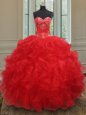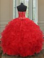 Home >  Quinceanera Dresses >  In Stock Quinceanera Dresses > Sleeveless Organza Floor Length Lace Up Sweet 16 Dress in Red for with Beading and Ruffles