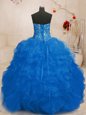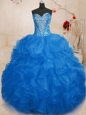 Home >  Quinceanera Dresses >  15 Quinceanera Dresses > Sleeveless Organza Floor Length Lace Up Vestidos de Quinceanera in Blue for with Beading and Ruffles
