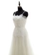 Home >  Wedding Dresses >  Perfect Wedding Dresses > Sleeveless Organza Floor Length Lace Up Wedding Dresses in Champagne for with Appliques and Ruffled Layers and Pick Ups and Hand Made Flower